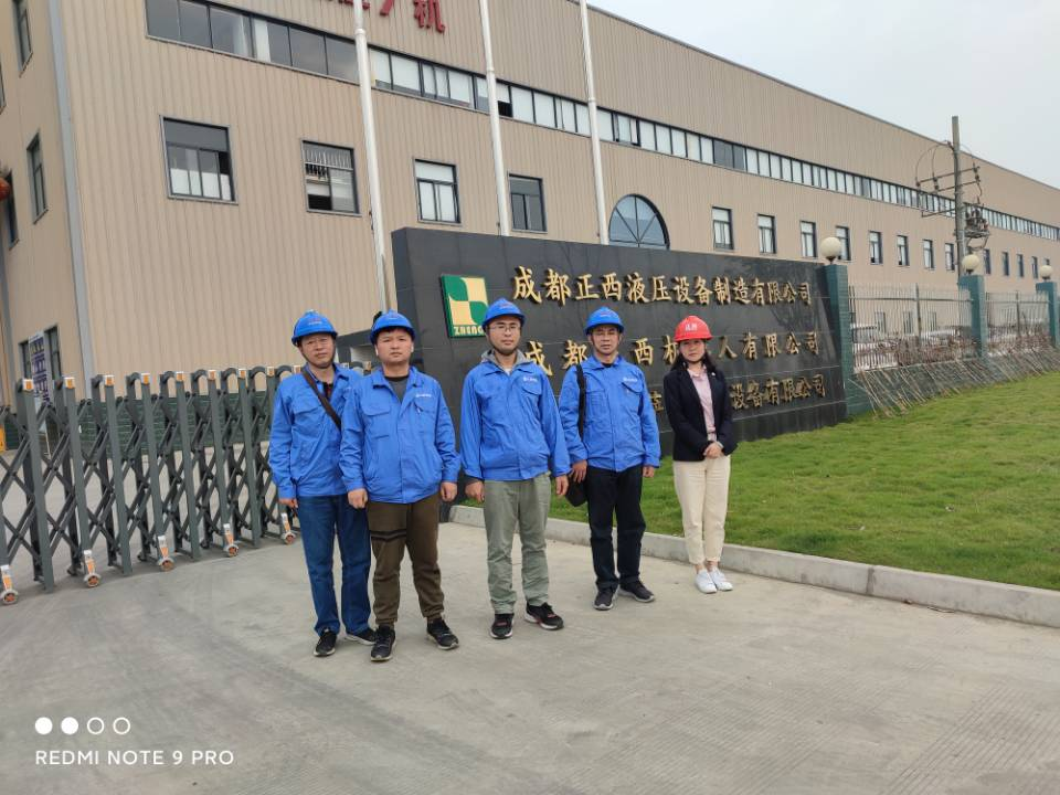 檢測人員現(xiàn)場照片 (持證人員:解洪亮(左三),證書號:A01(J)15101403; 梁倫祥(右二,證書號:A01(J)12100057) |