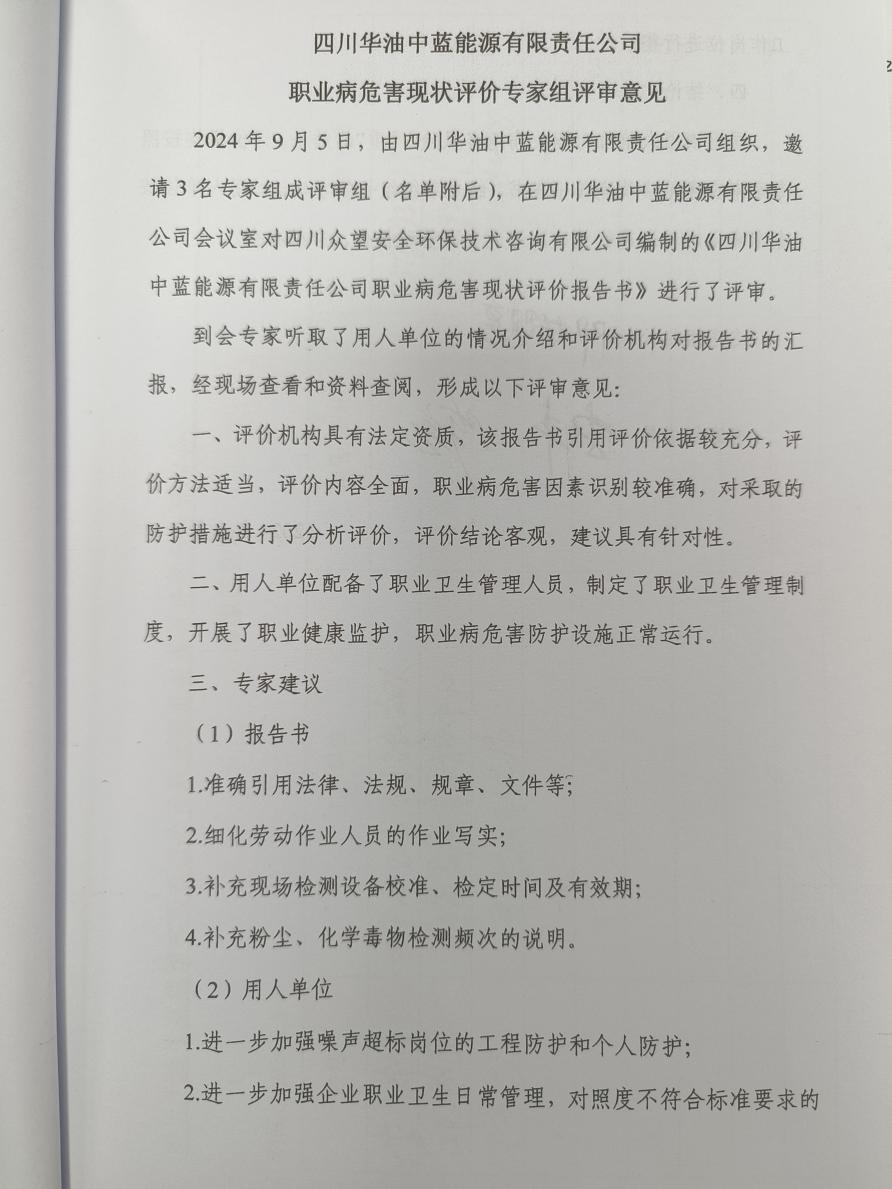 四川華油中藍能源有限責任公司職業病危害現狀評價 |