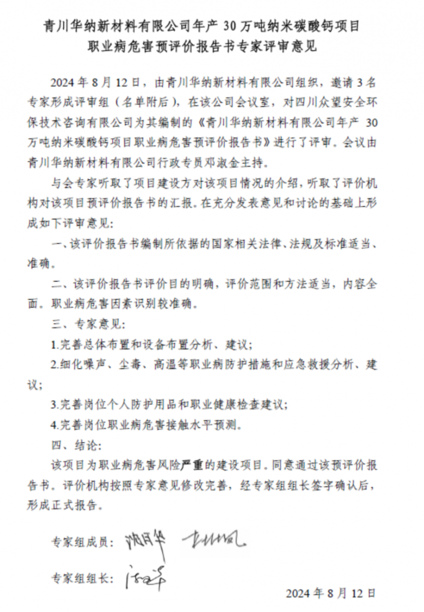 評價結論: 根據對本項目現場調查、職業病危害因素檢測結果和項目相關資料1、擬建項目選址合理、生產工藝、總體布局與設備布置等基本符合國家法律、法規和衛生標準要求。 2、擬建項目擬采取的職業病防護措施基本符合國家法律、法規和衛生標準要求。 3、擬建項目采光、照明基本符合國家法律、法規要求。 4、擬建項目輔助用室基本符合國家法律、法規和衛生標準要求。 5、擬建項目職業衛生管理和應急救援體系還需進一步完善。 6、擬建項目尚未制定職業衛生專項經費,還需進一步完善。 建議: 1 組織管理 1.1 施工建設期組織管理 1、應委托具備職業病防護條件的施工單位進行擬建項目的建設施工,并簽訂職業病防護相關合同。 2、施工單位在建設施工時應參照《建筑行業職業病危害預防控制規范》(GBZ/T211-2008)對擬建項目施工過程產生的職業病危害進行預防控制。 3、施工時配備有效的職業病危害防護設施,使工作場所職業病危害因素的濃度(或強度)符合GBZ2.1和GBZ2.2的要求。職業病防護設施應進行經常性的維護、檢修,確保其處于正常狀態。 4、施工單位應制定合理的勞動制度,加強施工過程職業衛生管理和教育培訓。 5、施工單位應配備有效的個人防護用品。個人防護用品必須保證選型正確,維護得當。建立、健全個人防護用品的采購、驗收、保管、發放、使用、更換、報廢等管理制度,并建立發放臺賬。 6、加強施工過程作業人員防護措施,具體方法見表F5-2。 7、青川華納新材料有限公司在建設施工期應督促施工單位落實職業病防治措施(職業健康體檢、個體防護等),并留有相應監督記錄,并明確要求施工單位在項目建設結束后向建設單位提供建設施工過程職業病危害防治總結報告。 8、青川華納新材料有限公司員工參與建設施工期相關工作時應注意做好個人防護。 1.2 日常運行時組織管理 1、擬建項目應根據《職業病防治法》制定職業病防治計劃和實施方案,并根據《工作場所職業衛生管理規定》(中華人民共和國國家衛生健康委員會令〔2020〕第5號)規定,完善職業衛生管理制度,具體完善內容應包括:(一)職業病危害防治責任制度;(二)職業病危害警示與告知制度;(三)職業病危害項目申報制度;(四)職業病防治宣傳教育培訓制度;(五)職業病防護設施維護檢修制度;(六)職業病防護用品管理制度;(七)職業病危害監測及評價管理制度;(八)建設項目職業衛生“三同時”管理制度;(九)勞動者職業健康監護及其檔案管理制度;(十)職業病危害事故處置與報告制度;(十一)職業病危害應急救援與管理制度;(十二)崗位職業衛生操作規程。 2、按照《國家安全監管總局辦公廳關于印發用人單位職業病危害告知與警示標識管理規范的通知》(安監總廳安健〔2014〕111號)的規定,應將工作過程中可能接觸的職業病危害因素的種類、危害程度、危害后果、提供的職業病防護設施、個人使用的職業病防護用品、職業健康檢查和相關待遇等如實告知勞動者,不得隱瞞或者欺騙。 3、建立、健全職業病防護設備、應急救援設施和個人使用的職業病防護用品的使用及維護、檢修、定期檢測制度,應有專人負責對設施進行維護、保養,以確保防護效果。 4、不得將產生職業病危害的作業轉移給不具備職業衛生防護條件的單位和個人。擬建項目在簽訂外包合同時應當將崗位存在的職業病危害因素告知外包工,確保外包工享有職業衛生教育、個體防護、職業健康監護等權利,外包合同中應包含職業衛生管理協議。督促外包單位安排本項目維護檢修人員進行職業健康體檢。 5、在醒目位置設置圖形、警示線、警示語句等警示標識和中文警示說明。警示說明應當載明產生職業病危害的種類、后果、預防和應急處置措施等內容。警示標識設置參考見表F5-3。 6、擬建項目應根據《職業病危害項目申報辦法》(國家安全生產安全監督管理總局〔2012〕第48號)等國家相關法律、行政法規的規定,及時、如實申報職業病危害因素,當生產工藝及原輔材料發生變化時,應及時向監督管理部門進行申報。 7、建議擬建項目試運行期間委托具有職業衛生技術服務資質評價機構進行控制效果及防護設施竣工驗收評價。正式投入生產后每年至少進行一次職業病危害因素的檢測。檢測結果應存入單位職業衛生檔案,并定期向所在地監督管理部門及員工匯報和公布;應該在制度中明確對不符合國家職業衛生標準和衛生要求的作業場所立即采取措施,積極治理。 8、根據《職業衛生檔案管理規范》(安監總廳安健〔2013〕171號)的要求,用人單位應建立職業衛生檔案,包括以下主要內容: (1)建設項目職業衛生“三同時”檔案; (2)職業衛生管理檔案; (3)職業衛生宣傳培訓檔案; (4)職業病危害因素監測與檢測評價檔案; (5)用人單位職業健康監護管理檔案; (6)勞動者個人職業健康監護檔案; (7)法律、行政法規、規章要求的其他資料文件。 9、擬建項目在初步設計階段應編制職業衛生防護設施設計專篇。擬建項目防護設施應與主體工程同時設計、同時施工、同時投入生產和使用,項目施工時應將有關防護設施嚴格落實到位。 10、設備大修時,外委作業人員應該納入本建設單位的職業病防治管理,完善外委作業的職業病防治管理制度,加強外委作業的現場管理;避免外包作業人員患職業病。 11、擬建項目中控室