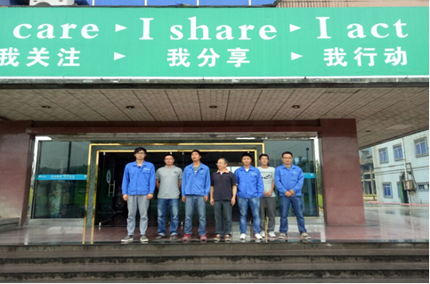 圖2 檢測(cè)人員現(xiàn)場(chǎng)檢測(cè)照片 (李棟,左三,證書(shū)編號(hào):A01(J)15101405; 李林,左一,證書(shū)編號(hào):A01(J)15101408 |