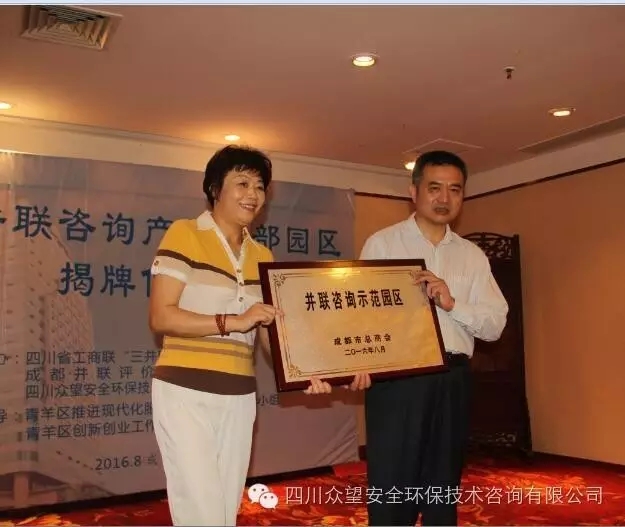 2016年8月26日上午,由四川眾望安全環保技術咨詢有限公司牽頭打造的“西部并聯咨詢產業總部園區”揭牌儀式在成都隆重舉行,省、市工商聯和青羊區政府及多家單位領導共150余人到場祝賀,共同見證全國首個并聯咨詢園區的誕生。