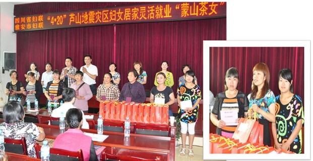 (公司副總黃富蘭參加四川省婦聯、雅安市婦聯主辦的“4.20”蘆山地震災區婦女居家靈活就業“蒙山茶女”培訓)